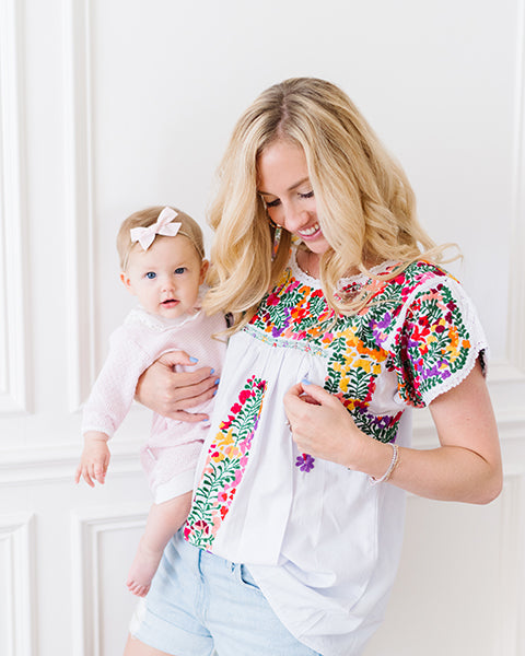Our nursing collection provides the beauty of a hand-made embroidered piece with the convenience of nursing your bundle of joy. With comfortably hidden zippers on the left and ride side, our flowy and draped style is flattering to wear anytime.